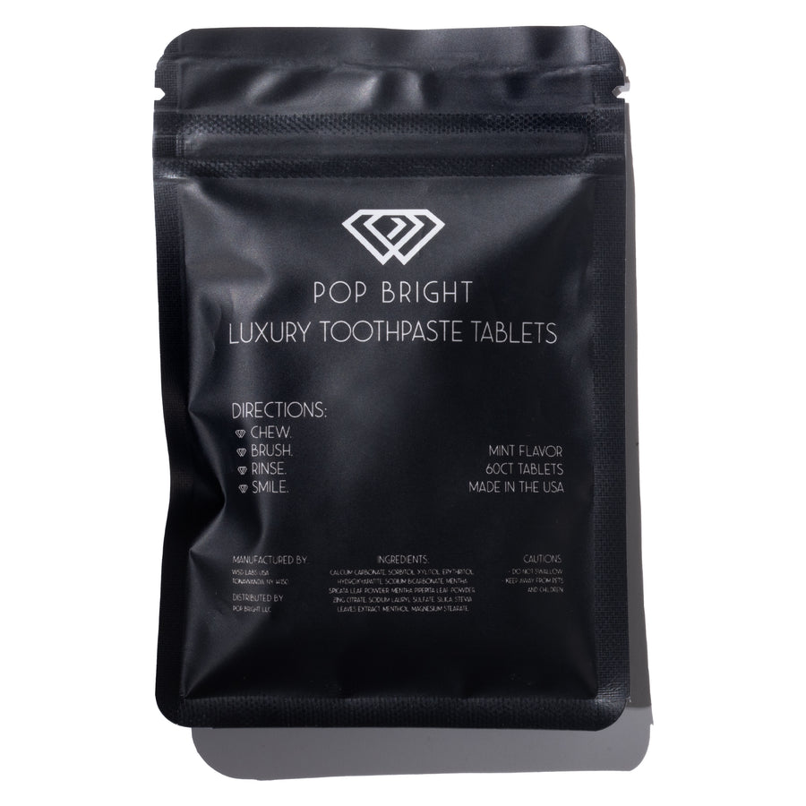 Introducing our Pop Bright Toothpaste Tablets, encapsulated in a sleek, resealable 60ct pouch designed for the discerning individual on the move. Crafted without fluoride, these luxurious tablets are infused with hydroxyapatite, a naturally occurring mineral in teeth, offering a sophisticated approach to dental care. This innovative ingredient works to remineralize and nourish your teeth, ensuring your smile is not only radiant but also nurtured with the essential nutrients it deserves. Perfect for the modern lifestyle, our Pop Bright Tablets provide a quick, effective, and natural dental care solution, anytime, anywhere. Elevate your oral hygiene routine with the opulence it warrants.